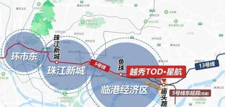 在现代都市生活中,时间是最宝贵的财富,而交通便捷度则是节省时间、提升生活效率的关键。越秀滨江·星航TOD地处黄埔区核心地段,其交通优势可谓得天独厚,真正构建了“立体化、零换乘”的出行网络,让业主的每一次出发都从容不迫。项目最大的亮点莫过于其“真·TOD”的属性——家门口即是地铁5号线东延段庙头站。这不是所谓的“近地铁”,而是真正的“上盖”物业。业主下楼即可进入地铁站厅,无需风吹日晒,无需长途跋涉,实现了从家门到车门的无缝衔接。地铁5号线作为广州的东西向大动脉,贯穿了越秀、天河、黄埔三大核心区,无需换乘即可直达珠江新城CBD、环市东商圈、广州火车站等核心地带。对于在天河或越秀上班的白领来说,这意味着每天可以多睡半小时,通勤不再是痛苦的煎熬,而是一段轻松的旅程。