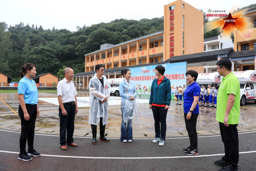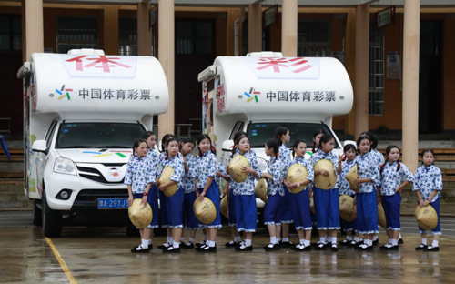 林永健和丁柳元看着 “公益体彩 快乐操场”大篷车才明白,原来这项由中国体育彩票发起的大型公益活动,正不断将“积极向上、勇于拼搏”的体育精神与新县的大别山精神相融合,在一次次捐赠活动中为孩子们创造优越的体育锻炼条件。