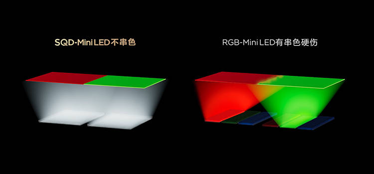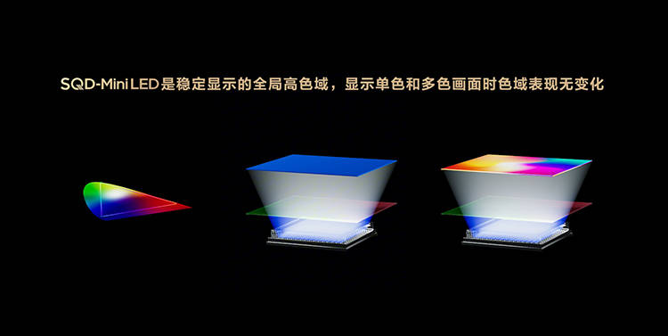 这意味着,无论是单色画面还是复杂多色画面,SQD-Mini LED电视都能保持色彩的高度准确性和纯净度,红得极正、绿得极准、蓝得极透。