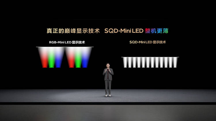 SQD-Mini LED技术带来了亮度提升了53.8%的聚核光芯、控光能力提升46.9%的新一代超聚光微透镜、让画面无暗影的首创无影均光塔等技术,通过优化发光芯片布局和控光算法,