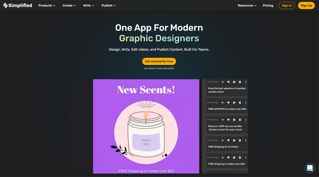Simplified是一款集设计、文案撰写、视频制作、协作和社交媒体发布于一体的在线平面广告设计软件,特别适合市场营销人员。它利用机器学习技术,能够快速完成图像裁剪和文本格式调整,大幅提升设计效率。