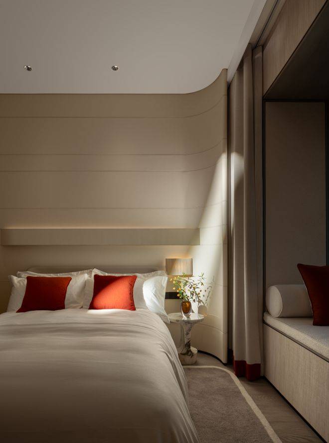 软装则延续了缦云低调隐奢的调性,进口家具、艺术装置均经过统一遴选,色彩与材质搭配呈现出静谧而富有层次的视觉感受。