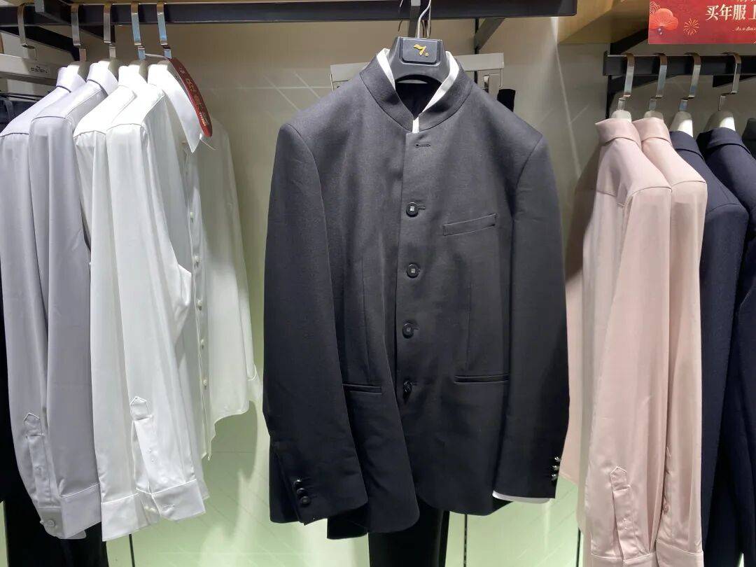 但目前来看,无论在营销还是产品层面,“中华立领”都被柒牌雪藏了起来。界面新闻走访柒牌深圳某门店时发现,店内陈列的西装外套多以常规的翻领款为主,仅有一两款立领的中山装可选。店员告诉界面新闻,“现在找中山装的人比较少,有顾客需要的话我们会提供图片,有喜欢的款再调货。”
