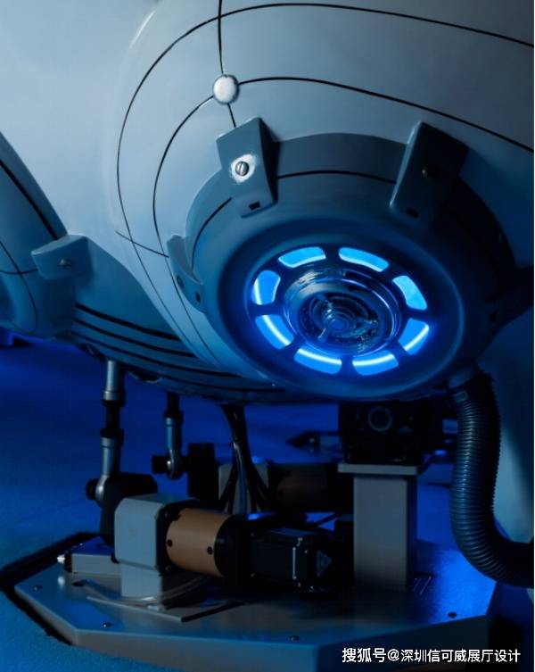 展厅最具冲击力的,是两项突破性技术的应用。裸眼3D空气悬浮成像系统跳出科幻想象,实现“看得见、抓不着”的清晰立体效果,团队历经十八次调试,定制出当时市场无先例的设备;22米长的CAVE剧场更将沉浸感拉满,铝材框架的三自由度运动座椅精准复刻场景震颤,40% 真实声源搭配“探索者”视角影片,让观众亲历科技构建的未来图景。