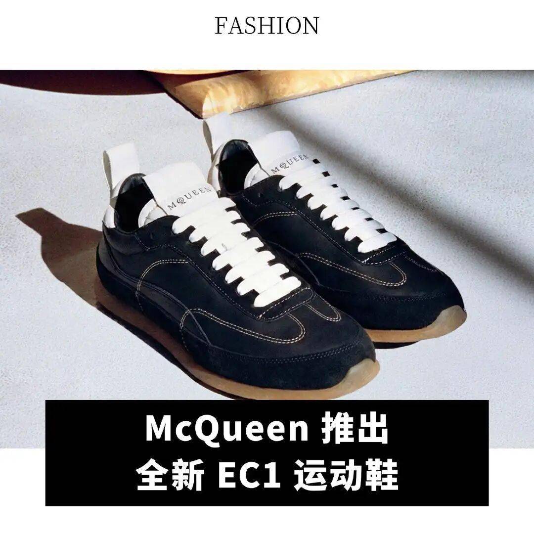 McQueen 释出全新 EC1 运动鞋履。根植于伦敦,McQueen 精神的核心城市,鞋款名称致敬品牌富有历史意义的设计工作室和工坊所在地。柔软、极富触感的设计,展现张力和并置。复古风格灵感的色彩盘,巧妙融合富有丰富质感的绒面革、科技感尼龙面料和橡胶鞋底,随性风格自在舒适,释放现代感和前卫活力。鞋面以醒目的 McQueen logo 细节装饰。(Lee)