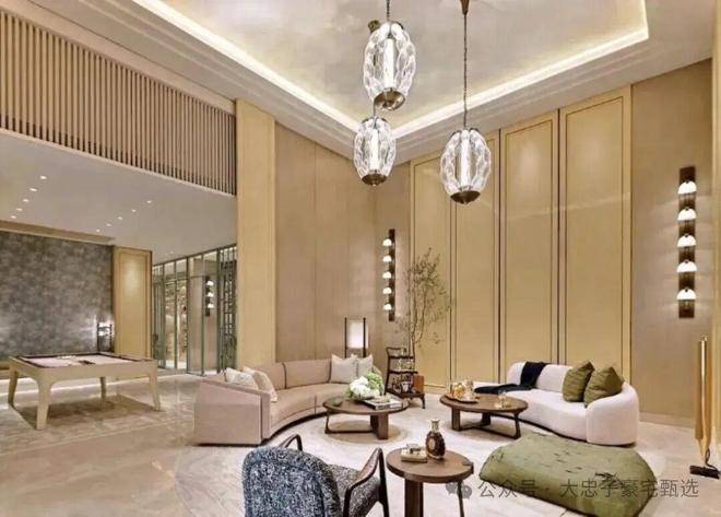 会所内的泳池上方做流畅且立体的吊顶线条,造型现代且富有层次感。这样的设计不仅提升了空间的视觉效果,更营造出一种轻松、悠闲的度假氛围。
