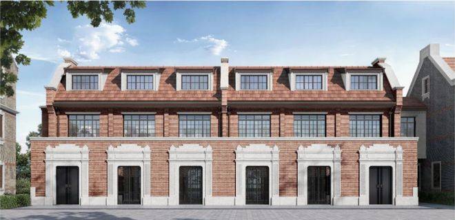 项目外立面并非简单模仿传统样式,而是通过对孟莎式屋顶、清水红砖外墙、传统石库门门头、老虎窗等元素的保留与转译,实现海派建筑语汇的当代延续。